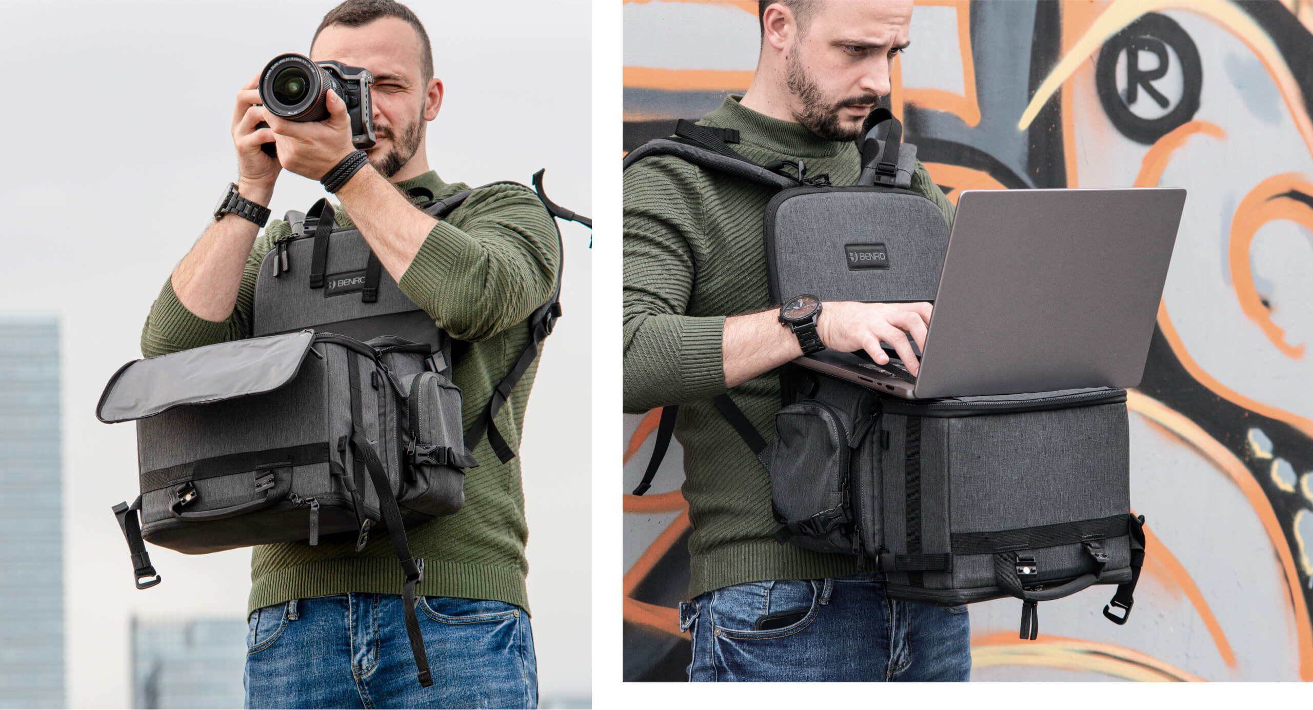 The Gemini 3-in-1 Modular design is a backpack that offers more than just a way to transport your photography gear. It's an ideal solution for photographers who are always on the move, as it also doubles as a personal workspace that makes it easy to review and organize your photos on your laptop, no matter where you are.